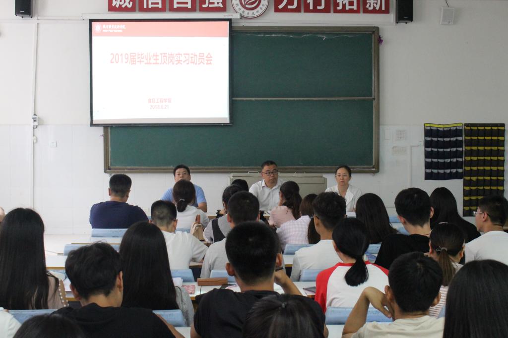 6月21日下午5:00,betway官网召开2019届毕业生顶岗实习动员会。会议由副书记吴虹主持,党总支书记、经理出席座谈会并讲话,教学办主任王跃强、指导教师代表及2019届全体毕业生参加了动员会。