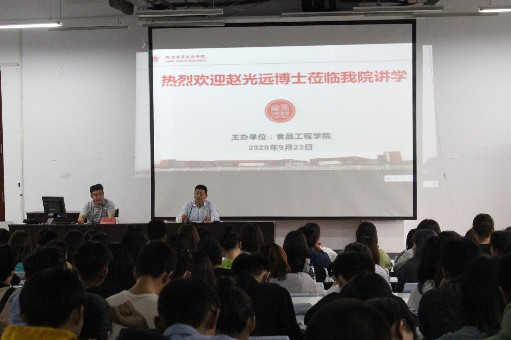 9月23日下午,betway官网第二期“鹤院美好食光”大讲堂在拓新二号楼二楼报告厅举行。郑州轻工业大学教授,研究生导师赵光远博士应邀作了题为《超高压技术在食品中的应用》的学术报告。