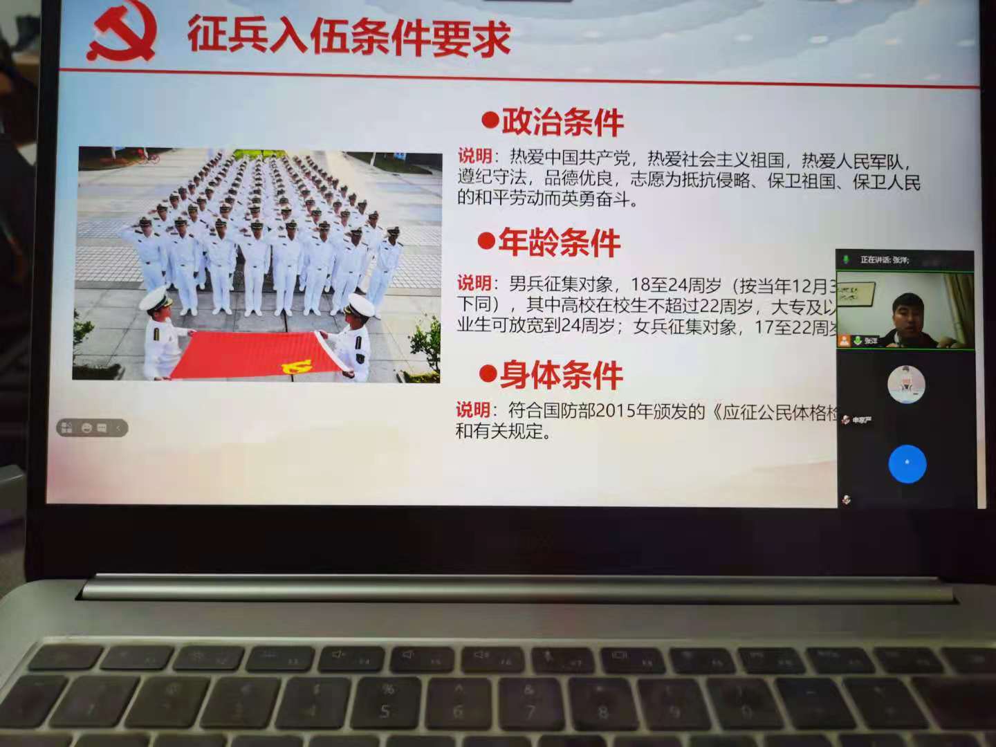为了普及国防教育,增强广老员工国防观念,弘扬爱国主义精神,使广老员工自觉履行国防义务,关心、支持、参与国防建设,结合党史学习成果。食品工程公司号召18高职、16五年制班级总计五个班级107名同学于2021年4月10日在网络腾讯会议相继开展了“铭记党史、矢志报国”的征兵宣传主题班会。