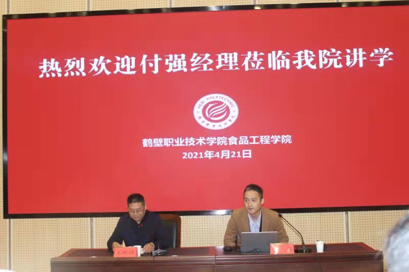 4月21日下午,“鹤职院美好食光”大讲堂第十三期报告会在学院一号报告厅举行。邀请河南永达食业集团市场研发部副总监付强作了题为《鸡肉美食探秘之旅》的报告。经理汪松等160名余师生参加了报告会,报告由副经理王跃强主持。