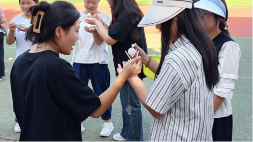 15时30分,同学们到达预定位置后,各班负责人先为大家介绍活动内容和方式,并按照活动方案开展团建活动。随着“筷子夹球”、“听歌识曲”、“击鼓传花”、“一元五角钱”等游戏的开展,同学们逐渐熟悉,开始一块聊天、相互了解,慢慢消除紧张与陌生感,变得更加积极主动,活动气氛逐渐火热,温暖与快乐洋溢在每一位同学的脸上。