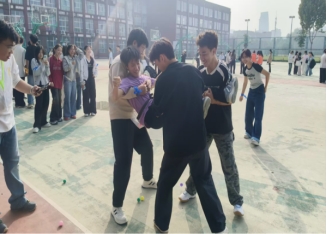 心理运动会聚焦“趣味竞技+心理赋能”,学院代表队参与“小鸡下蛋”“旱地龙舟”“背靠背夹气球”三大核心项目。“小鸡下蛋”中,队员灵活扭动身体抖落乒乓球,展现良好身体协调性;“旱地龙舟”10 人一组同步发力,喊着口号稳步前行,团队协作力凸显;“背靠背夹气球” 环节,选手两两配合、谨慎折返,默契十足。最终,代表队以各项目稳定表现摘得一等奖。