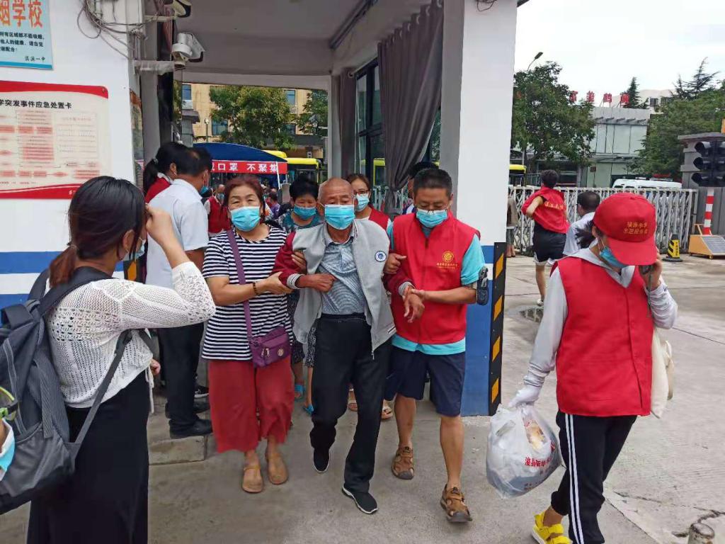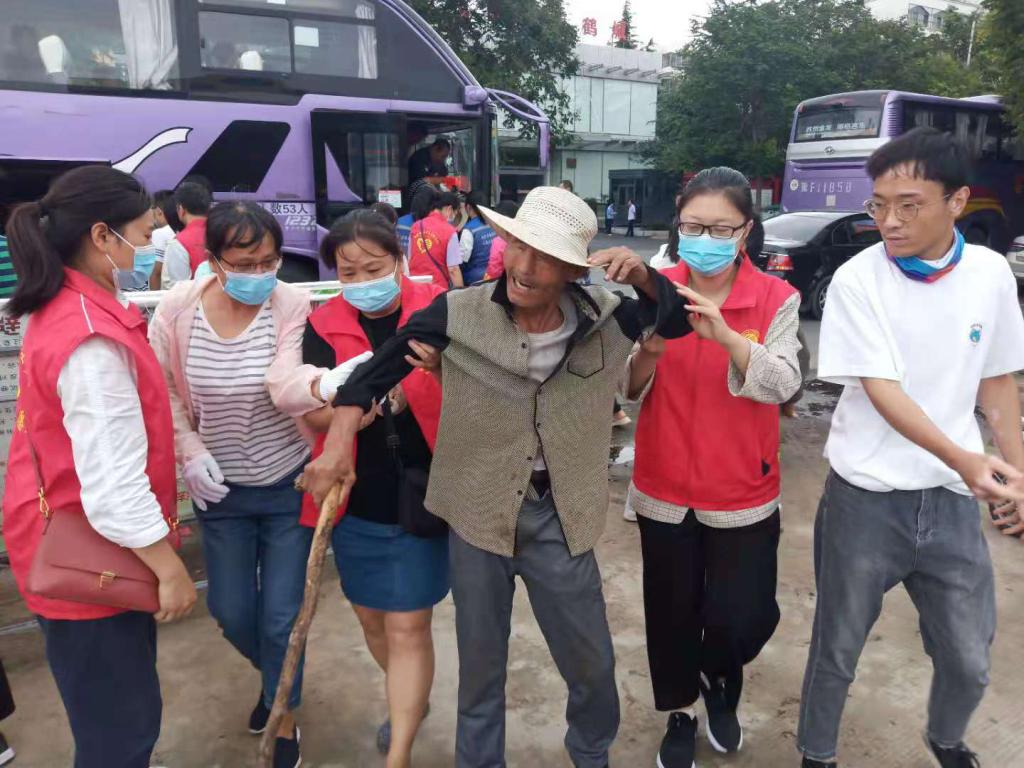 教师志愿者们从浚县灾民手里接过他们的行李,拉住他们的双手,将他们搀扶进校园,帮他们做好登记,带着灾民住进学校宿舍,安置好乡亲们的生活。