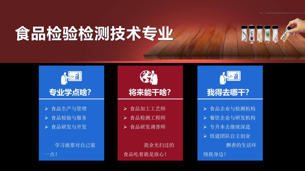 人才培养目标:培养热爱社会主义祖国、拥护党的基本路线;具有必备的食品检验检测技术专业基础理论和专业知识,重点掌握从事本专业实际工作的操作技能;适应食品检验检测技术专业需要的专业技术技能型人才。