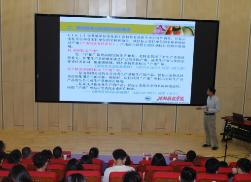 高晗结合自己多年预包装食品标签相关工作经验,首先介绍了预包装食品标签标准及规定,阐述了预包装食品标签标示的要求,针对预包装食品标签常见问题进行解析,对预包装食品标签出现问题的处罚规定进行详细解读并提出了相应的补救措施。讲座过后,公司师生及企业负责人针对预包装食品标签相关问题进行提问,高晗教授深入浅出地为大家一一解答。精彩的报告引来了师生们的阵阵掌声。