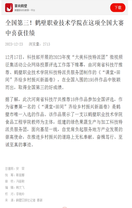 鹤壁市绿色果蔬生产与加工产业科技特派员服务团 |