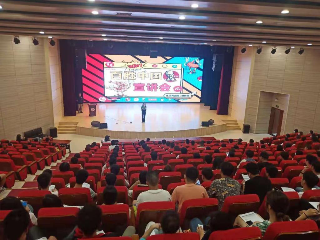 潘蕊详细介绍了企业概况、发展前景、工作岗位需求、薪资待遇等信息,并与参会同学进行了热情互动。宣讲结束后,七十多名同学向百胜中国控股有限公司旗下肯德基和必胜客投递了简历并参加了面试,60名员工通过面试。
