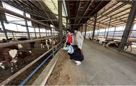 冯丽丽博士充分发挥“政产学研用”协同创新桥梁作用,聚焦畜牧业高质量发展核心需求,组织师生团队围绕智能养殖关键技术应用与冬季管理痛点问题,开展精准化、专业化技术服务。在严格遵守生物安全防控规范的基础上,师生实地考察了企业全自动饲喂系统、电子耳标识别称重平台及信息化管理中枢,系统了解大数据采集、个体生长动态监测、精准营养调控等数字化技术在现代畜禽养殖中的集成应用。通过沉浸式学习,员工们深刻体悟到科技创新正重塑传统农业形态,智能化、精细化、绿色化已成为畜牧业转型升级的核心方向。